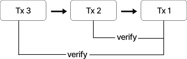 As shown in the figure above, TX1 needs to verify its parent transaction TX2 and grandfather transaction TX3 to check whether the contract code and data are consistent with itself.